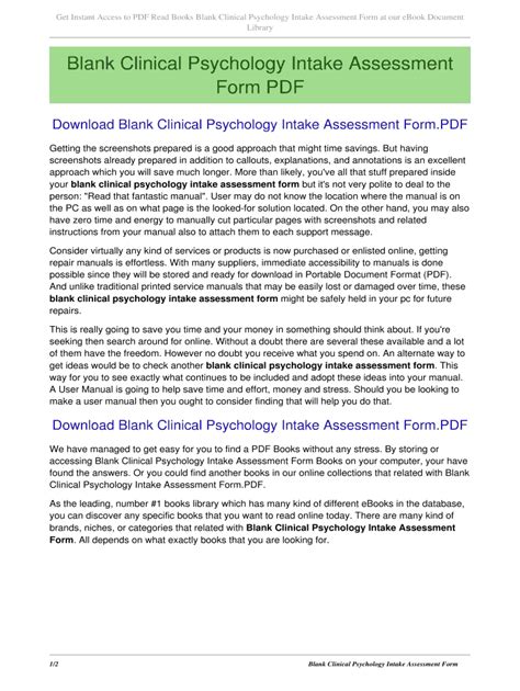 Read Blank Clinical Psychology Intake Assessment Form Audio CD
